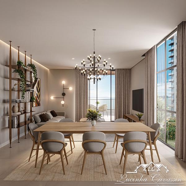 Apartamento de 149m² de área privativa, 03 suítes e 02 vagas de garagem, com sacada e churrasqueira.